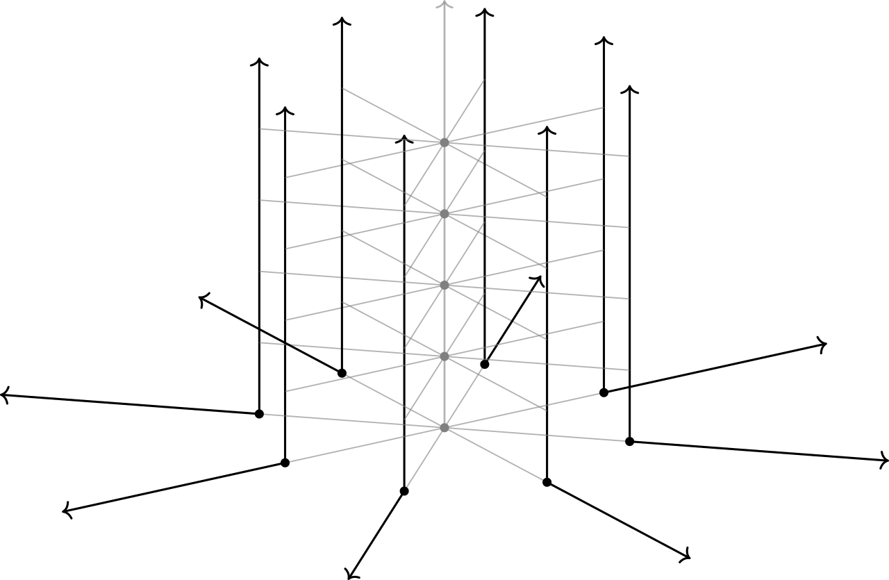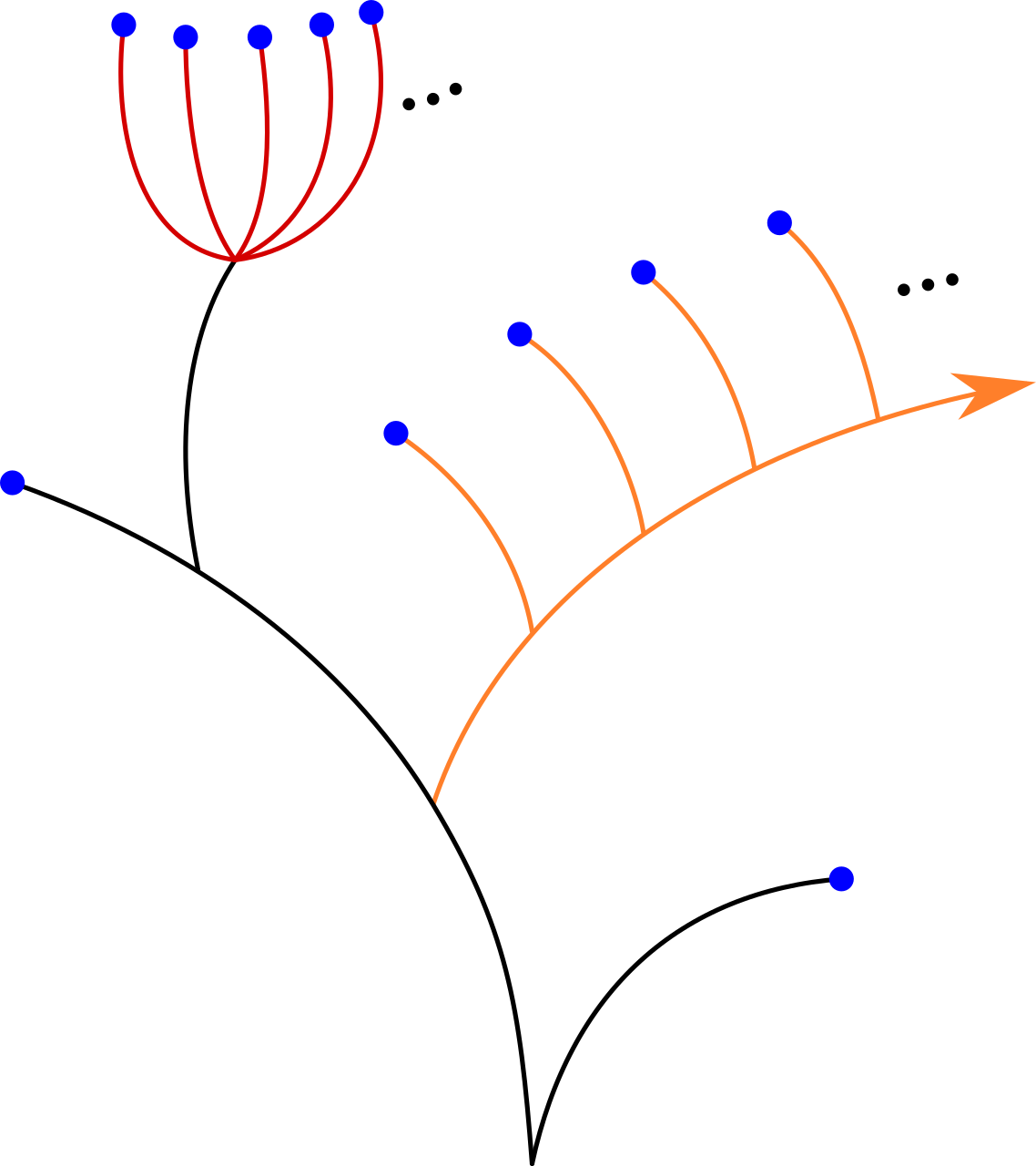 I constructed the whirl graph on the left to answer three questions about the Farey graph at once. For instance, the whirl graph is infinitely edge-connected and contains the Farey graph as a minor with branch sets of size two, but it does not contain a subdivision of the Farey graph. In fact, the whirl graph contains no subdivision of any naively constructed infinitely edge-connected graph, because it has the following property: For any two vertices \( \mathrm{u} \),\( \mathrm{v} \) and any integer \(\mathrm{k} \geq \mathrm{1} \), the whirl graph contains \( \mathrm{k} \) edge-disjoint order-compatible \( \mathrm{u} \)-\( \mathrm{v} \) paths but not infinitely many.